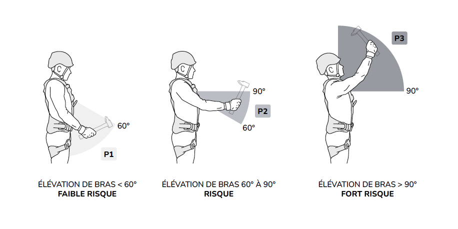 Classification des zones à risque de blessure d’épaule en fonction du niveau d’élévation du bras.